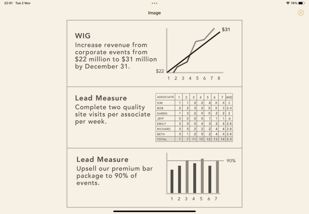 Wig Sessions might vary in content, but the agenda is always the same. Here’s the three-part agenda for a WIG Session, along with the language you should be hearing in the session:
